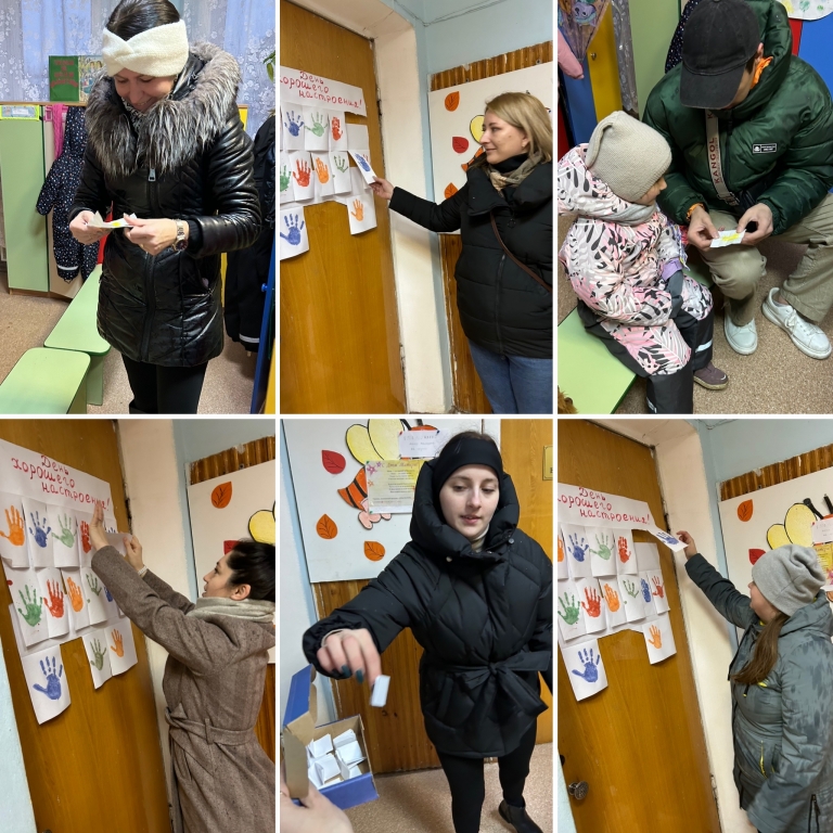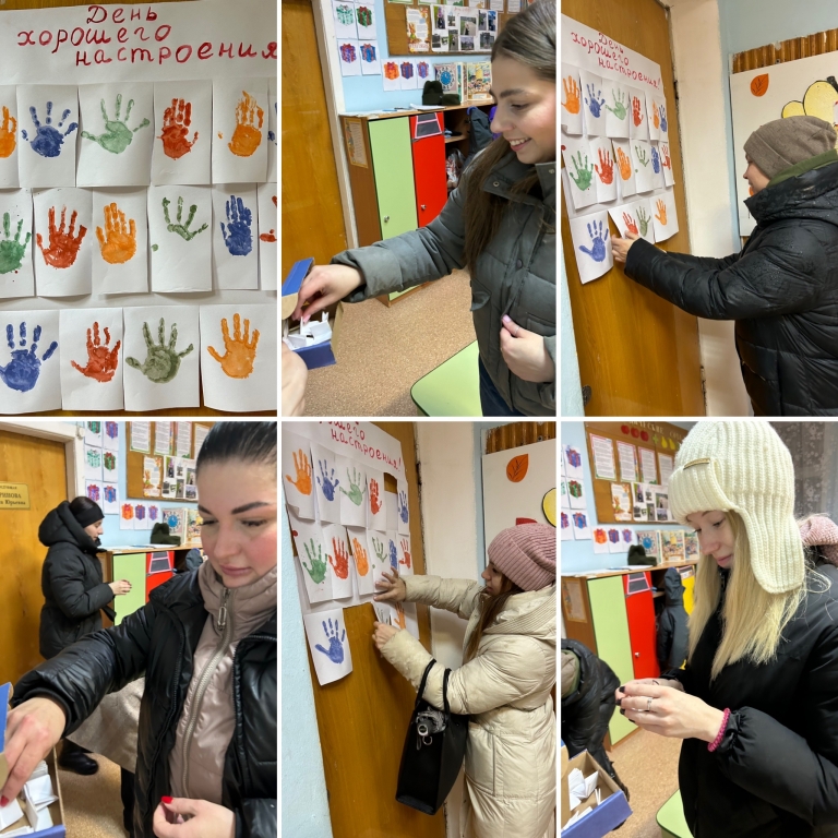 На группе «Пчёлка» прошел день хорошего настроения! Заранее заготовив сюрприз: свои яркие ладошки и маленькие солнышки, ребята группы в часы приема раздавали их своим мамам и папам, тем самым настраивая их на позитивный рабочий день, даря вместе с ладошками и солнышками хорошее настроение!